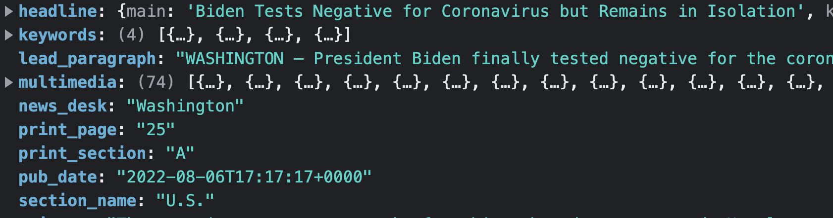 fetch(`https://api.nytimes.com/svc/search/v2/articlesearch.json?q=covid&api-key=YOURKEY`)
